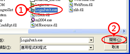 點選「LoginPatch.exe」程式,後按下「開啟」按鈕。 |