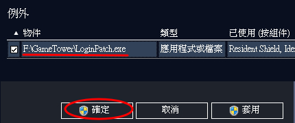 點選「例外」選項後,再點選「新增例外」按鈕。 |