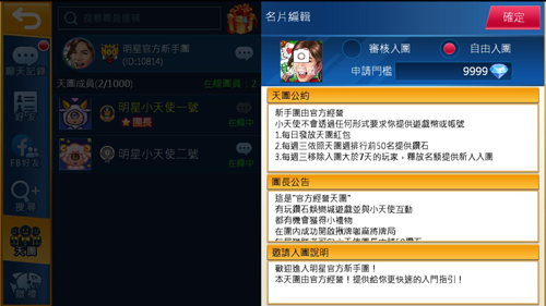 若天團升等至一定等級後即可選擇審核入團或自由入團