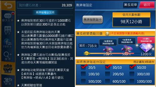 揪牌咖之鑽石抵台可由團長/副團長設定3組底台
