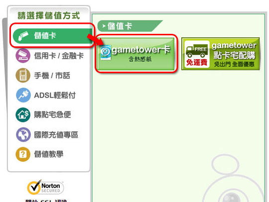 gametower點數。 購買後請在「儲值淘點」的頁面,選擇「儲值卡→gametower卡」。