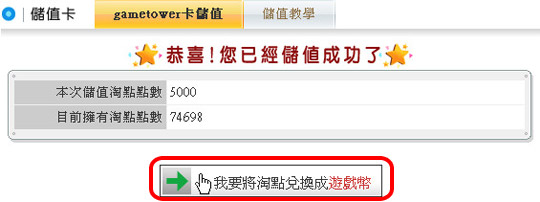 ,請按下【我要將淘點兌換成遊戲幣】,即可進入淘點兌幣的流程哦!