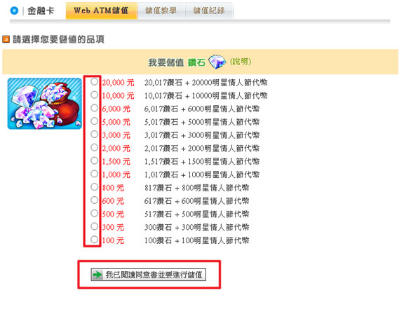 Step 2 請選擇您要儲值的品項後,按下【我要進行儲值】。
