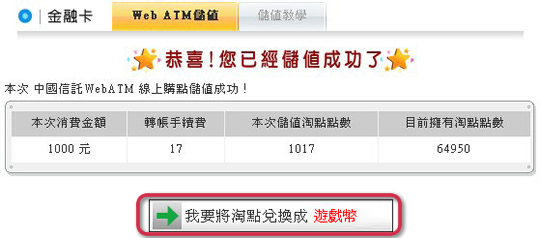 Step 5 恭喜您儲值淘點成功。