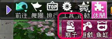 在社交區點選右上角功能選單「休閒-瓶子」即可進入漂流瓶。