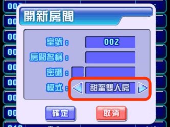 1.「一般六人房」:房間可容納人數為1~6人,無法進行情侶動作。 2.「甜蜜雙人房」:2人以下才可開啟,可作情侶動作,不限定是否為情侶及角色性別。