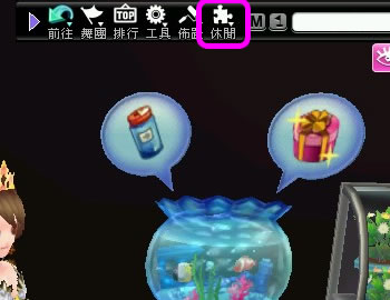點選上方介面「休閒」→「魚缸」按鈕,或房間內的魚缸,就可以開始養魚囉!