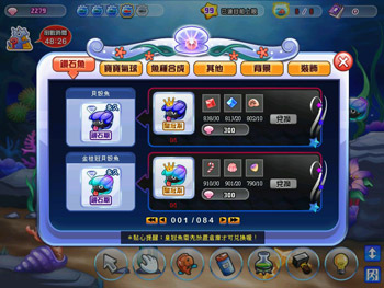掉寶: 只要點選魚頭頂出現「禮物盒」,魚就會掉出不同的寶物與經驗值。