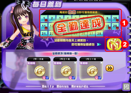 每日簽到拿好禮,全勤再拿專屬禮