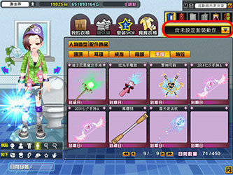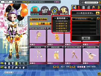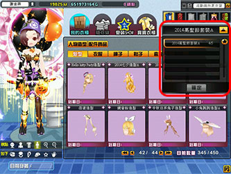 介面上顯示穿戴上的各套裝名稱以及數量,點選後還可預覽其特殊動作唷!