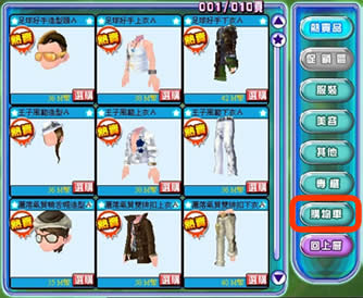 2進入購物車選單後,請先挑選確定要購買物品(打勾表示選擇購買),另外可利用「時限」欄位調整購買服裝或道具的使用天數,最後點選「結帳」即可完成購買動作,結帳會顯示總G幣與M幣的花費金額。