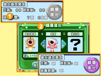 音樂精靈進化音樂精靈只要符合進化需求就可以進化成不同的造型,技能也會變強,想辦法進化出稀有品種的音樂精靈吧!