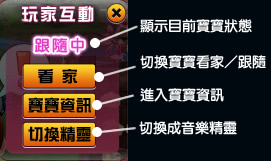 | *對著其他玩家的寶寶按下滑鼠右鍵,也可以進入寶寶資訊,查看他的養成成果喔! |