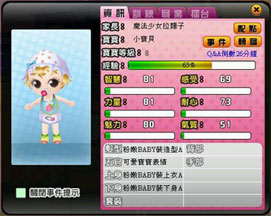 | 寶寶系統還有一項非常特別的地方,就是寶寶的性別會隨著他所穿著的服飾而改變,玩家們可以恣意地將寶寶變男變女變變變,今天是帥氣小王子~明天是可愛小甜心,都由你自己決定! |