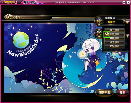 | (2) 滑鼠移至右上角,可選擇玩法模式及查看過關條件 |