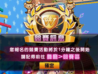 當報名了競賽活動,系統將於比賽開始前1分鐘送出活動提醒通知。