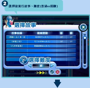 1、請至商城「其他」類購買 2、在新手、高手、自由或超嫩廳館內的房間列表,點選下方「個人」中的「持有道具」 3、選擇「劇情重置卡」按下「使用」 4、選擇欲重置的故事、難度。然後就可以從第一關開始挑戰囉