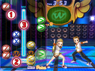 全新介面的嶄新玩法,由上而下的節拍指令,需要雙手並用的進行遊戲。 選擇方式:開新房間選擇「節奏類型」 玩法: 1.指令欄:由上到下出現的指令,利用〔Z〕〔X〕〔<〕〔>〕四個按鍵雙手同時進行遊戲。 2.判定點:指令到這裡的時候就抓準節拍按下對應的按鍵吧!依照節拍的準確度,會有Perfect、Great、Cool、Bad、Miss等不同的評價,評價越高分數越高! 3.集氣表:隨著遊戲的進行,集氣表會慢慢的增加,集到Max的時候就可以按住〔空白鍵〕發動逆轉要素,變身成音樂精靈進行遊戲,分數更以兩倍計算!