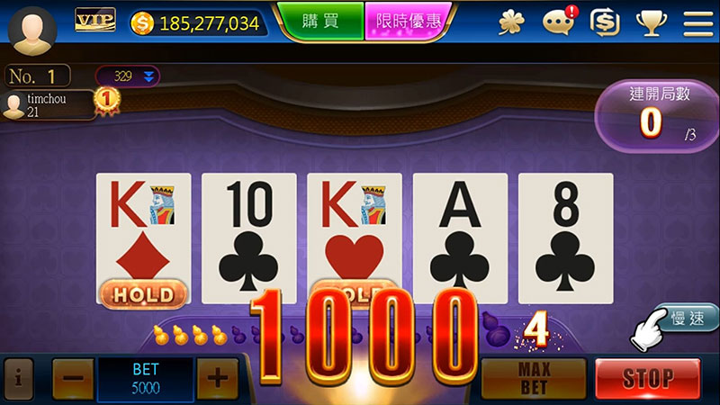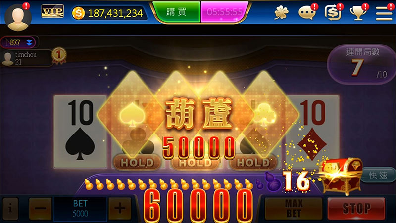 ◆ 連發大獎超驚喜,讓您體驗連中10局[同花大順] ,贏得5000倍高額巨獎的爽快感受!